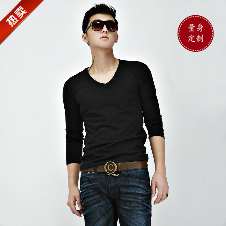 Spring New Style Korean Men's Tight T Shirt Fashion V Neck 3/4 Sleeve T Shirt Lycra Cotton Solid Color Undershirt