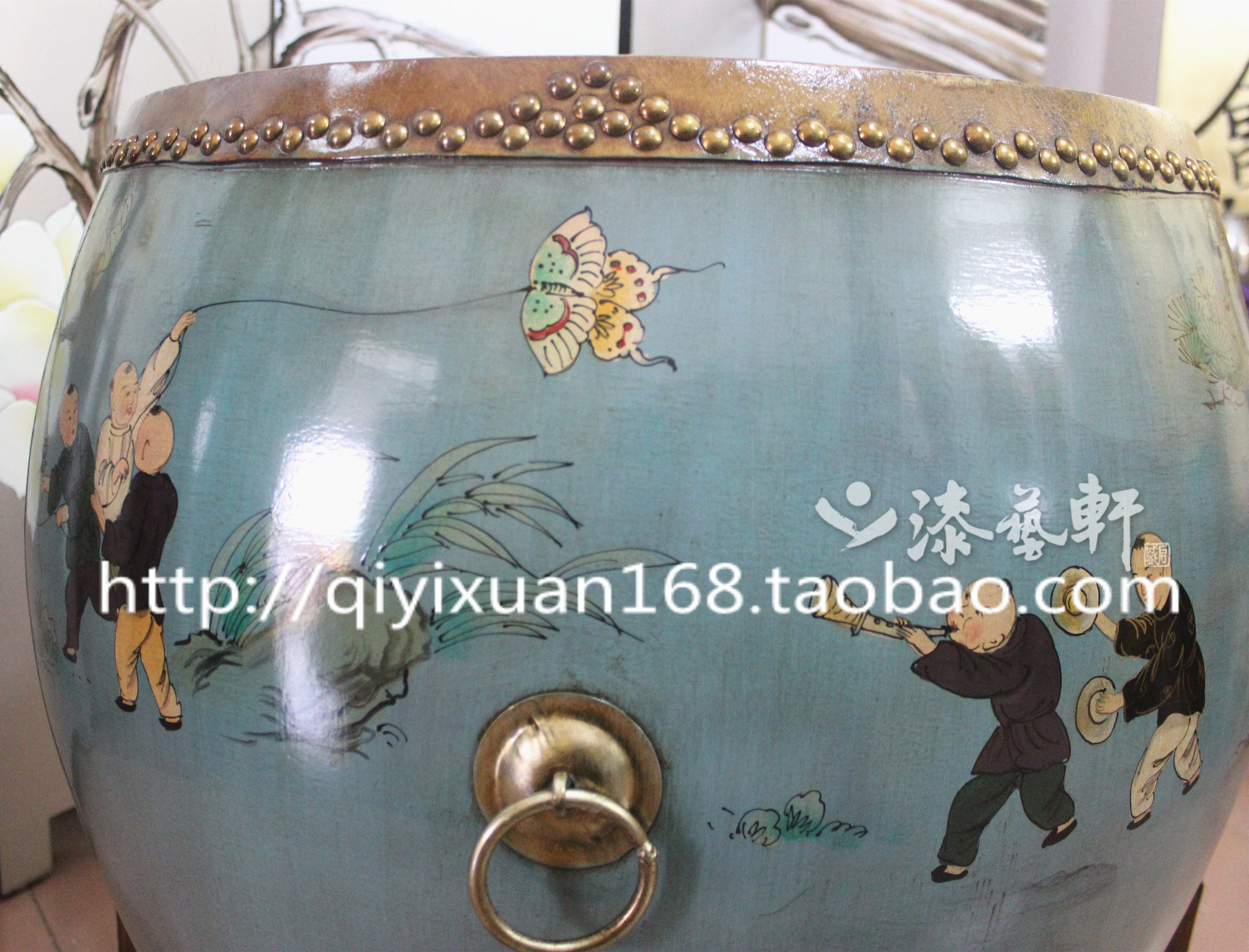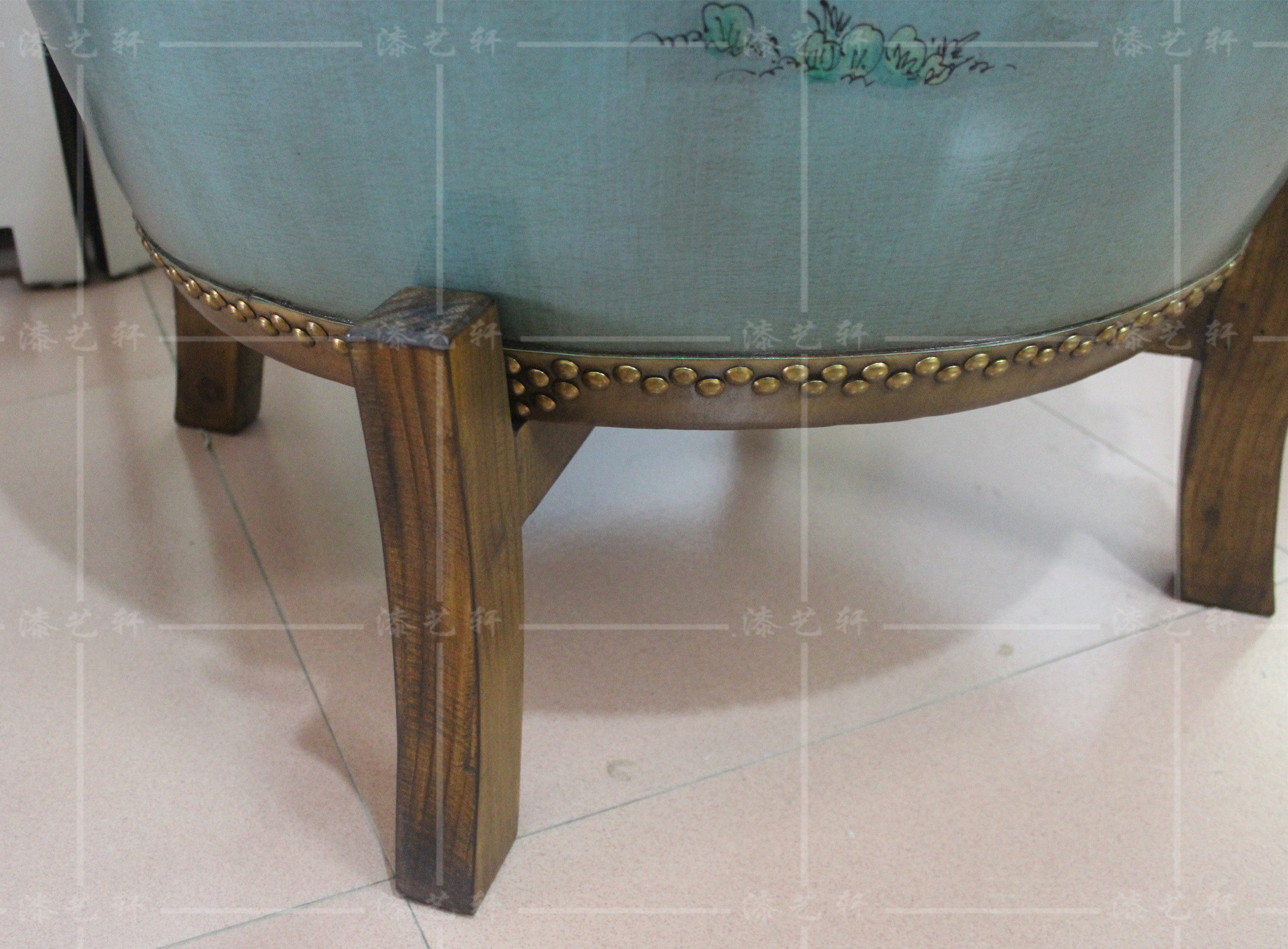 Baizitu leather drum coffee table hand-painted neoclassical antique old furniture solid wood living room tea table