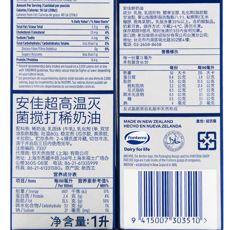 Imported Antya Milk Oil 1L Animal Sex Fresh Cream Rare Cream Framed Flower Cake Egg Tarts Special Baking Raw Material