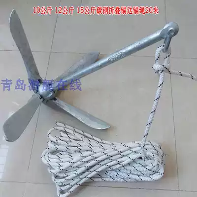 Fishing boat glass fiber anchor galvanized anchor folding anchor carbon steel anchor 10kg 12kg15kg send 20 m anchor rope