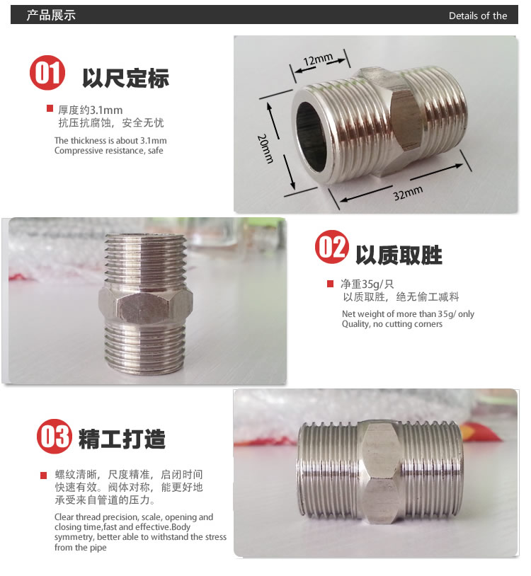 304 stainless steel double male screw (4 points) 304 stainless steel double male screw (6 points)