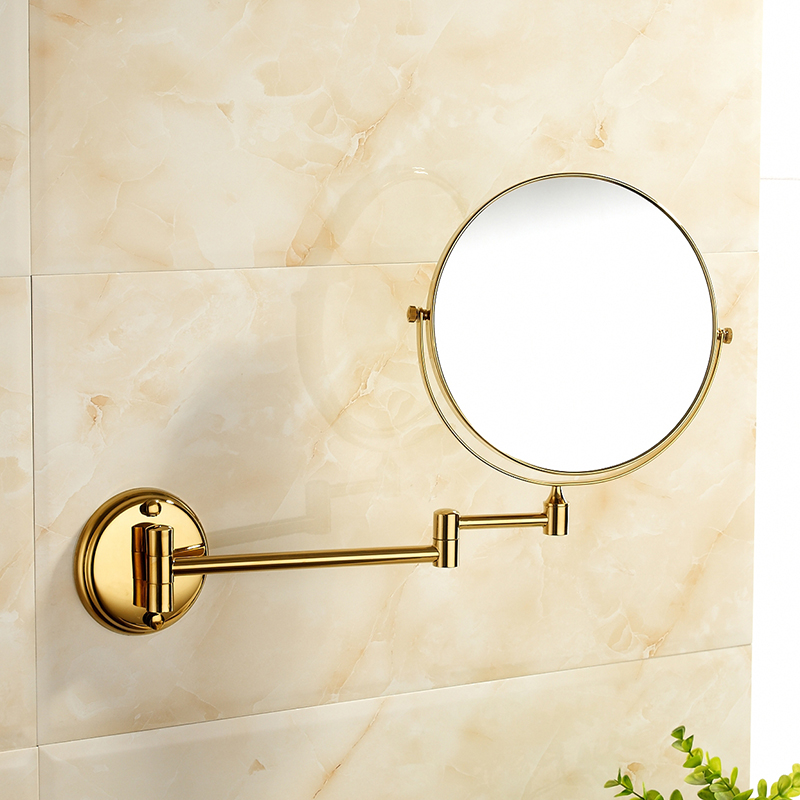Lyle bathroom Copper European Gold beauty mirror Double-sided bathroom makeup mirror enlarged rotating powder room Wall-mounted