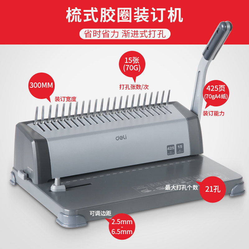 Deli 3872 comb binding machine clip strip punching machine manual rubber ring 21 hole a3a4 paper file tender office 10 hole punching voucher binding machine rubber ring binding machine