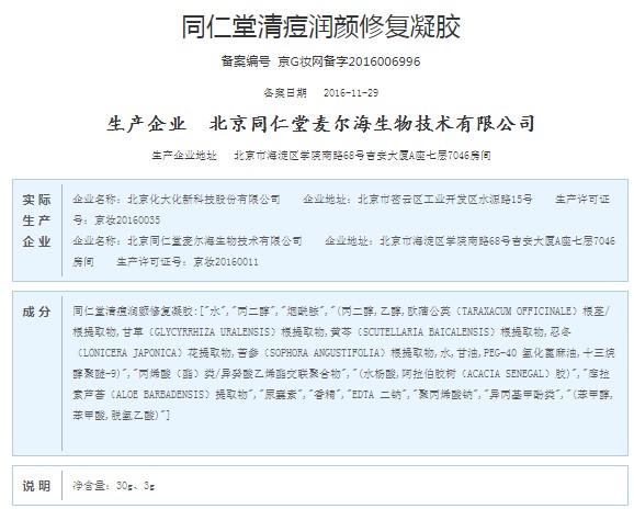 Beijing Tongrentang Mel Hai Qingzang Acne Repair Gel 30g