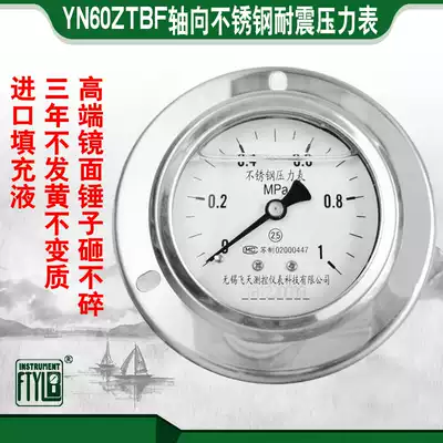 FTYLB Wuxi Feitian YN60ZT-BF III Anti-corrosion 304 Axial Belt Front Seismic Stainless Steel Pressure Gauge
