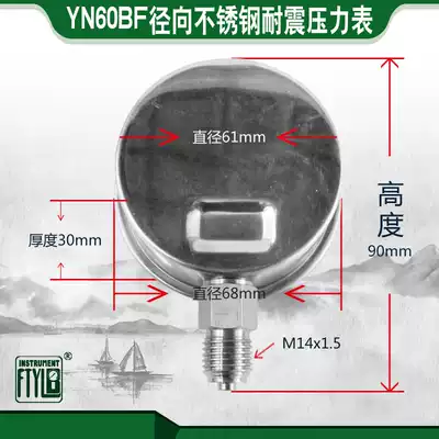 FTYLB Wuxi Feitian YN60BF anti-corrosion and acid-resistant 304 shock-resistant stainless steel pressure gauge