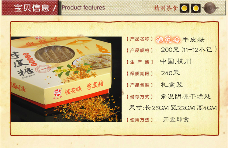 Hangzhou Specialty Sweet Fragrance Garden 200g Osmanthus Fragrance Cowhide Candy Traditional Pastry Heart Authentic Snacks