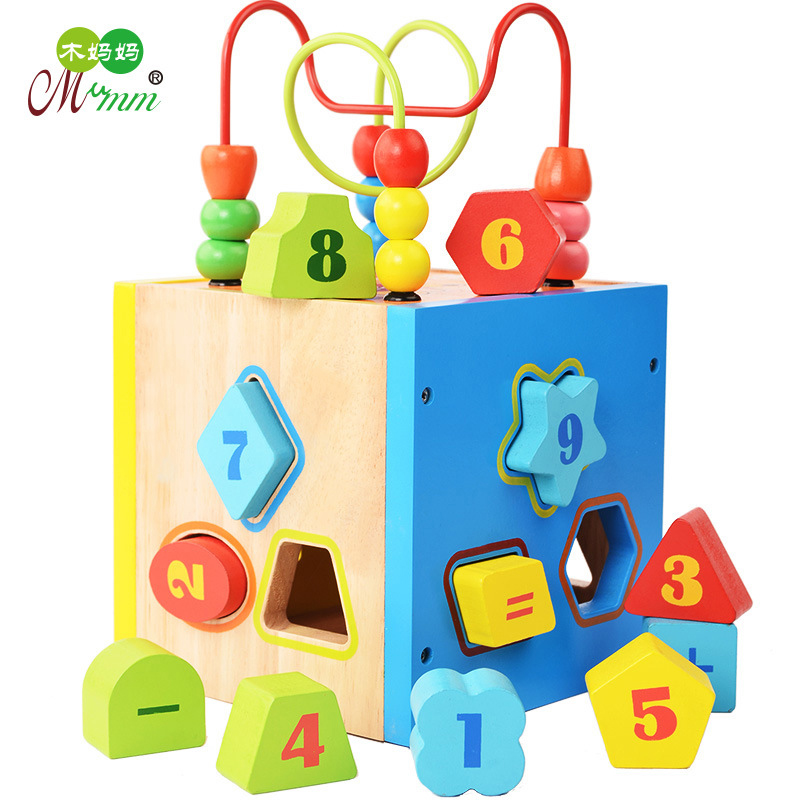 Solid wood 13-hole porous percussion intelligence box top cow fifteen-hole shape trailer Bear intelligence box top Cow fifteen-hole digital trailer multi-function 12-hole bead shape intelligence car