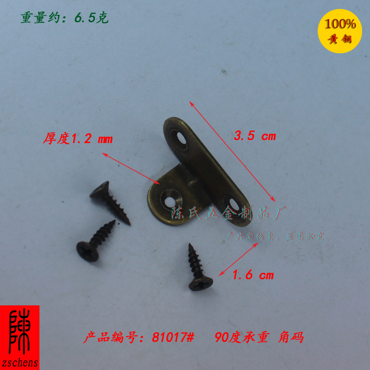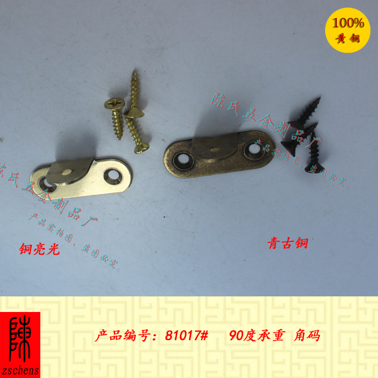 Copper heart Tongde Chinese antique furniture pure copper clad corner edge corner guard connection piece 90 degree angle code fixed triangle code