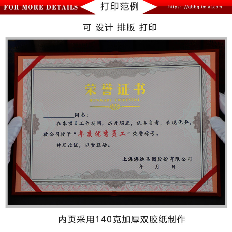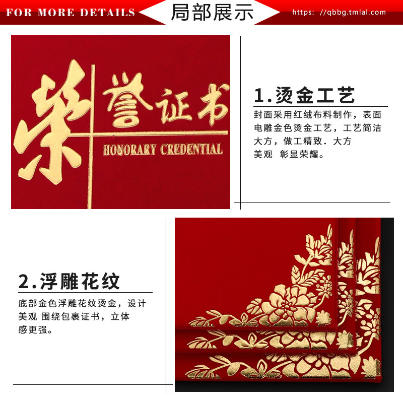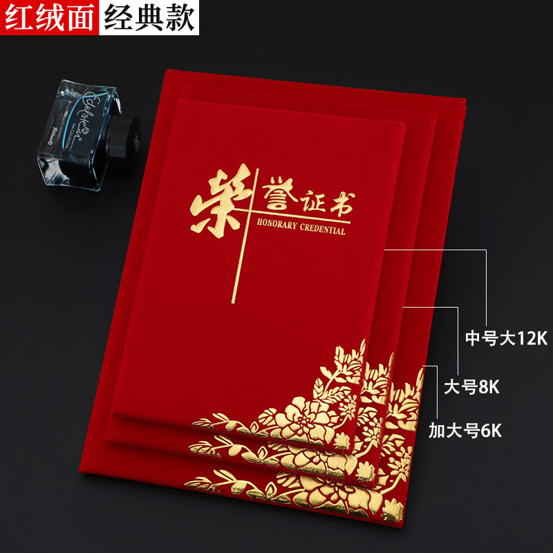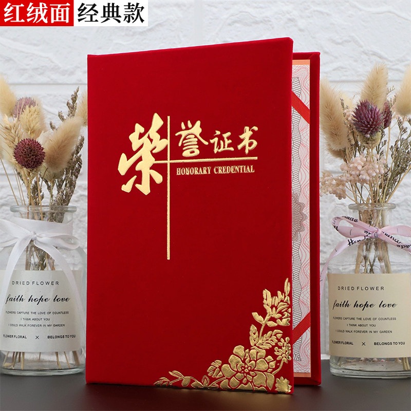 Qiheng Honorary Certificate Classic Red Suede A4 Outstanding Staff Award Certificate Award Award Certificate Award Certificate Certificate Certificate Certificate Case Cover Customized as Inner Core Inner Page Can Print Large 12K