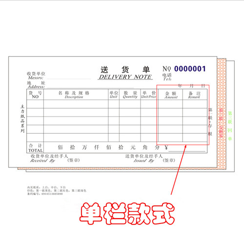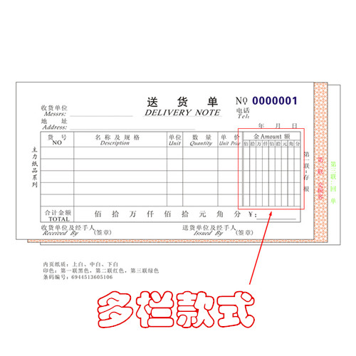 Triple-column delivery note 509# Triple-column delivery note 510#