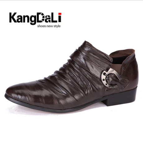 Condali new style business positive dress leather shoes men genuine leather Korean version buckle hair stylist shoes Inlen pointed leather shoes wave