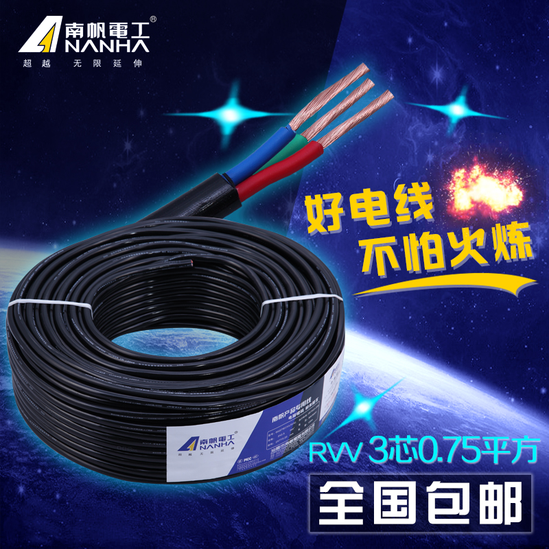 South sail wire RVV3 * 0 75 copper core Soft jacket line 3 Core power cord socket Line signal Line national line