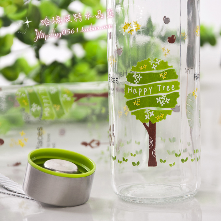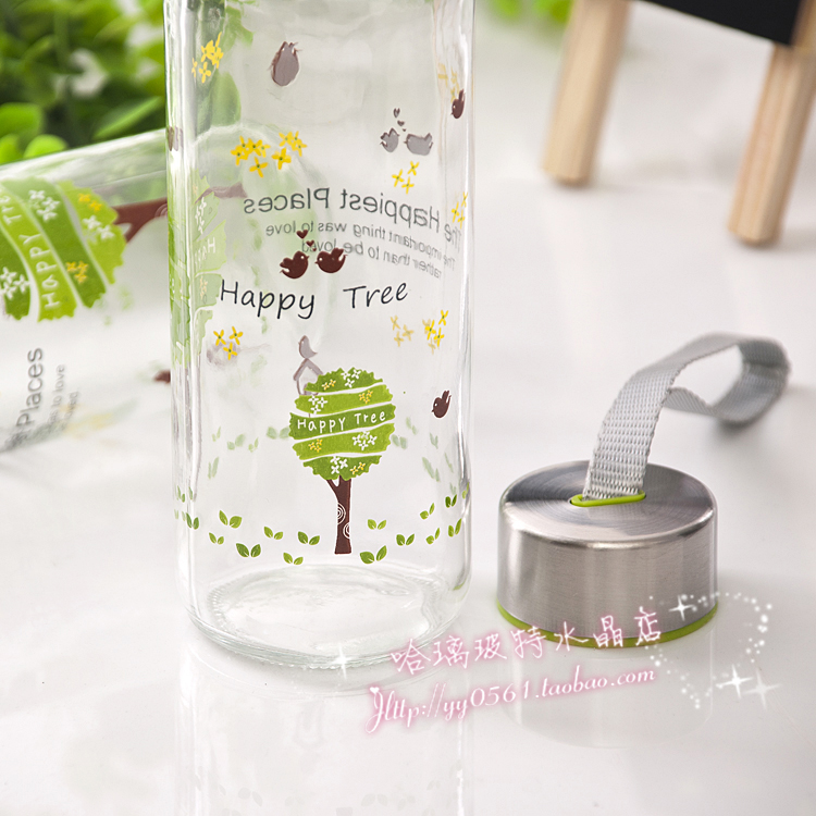 South Korean glass cup portable cup female student Korean version small fresh water glass male creative trend water bottle cute brief