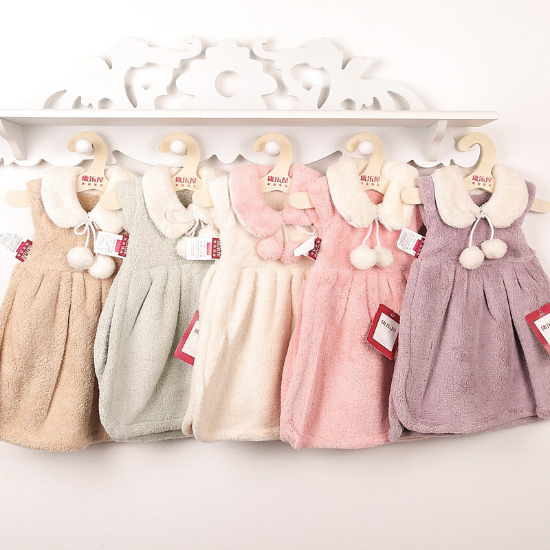 Cute Korean hanging towel towel Coral velvet kitchen wipe hand towel cotton creative thickening absorbent water