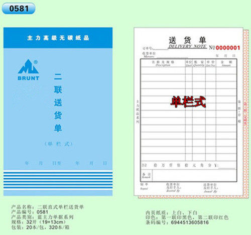 32K multi-column delivery order 582#(vertical)32K single-bar delivery order 581#(vertical)