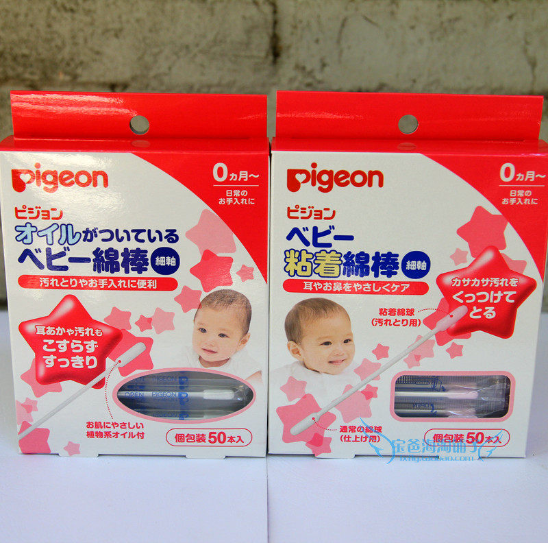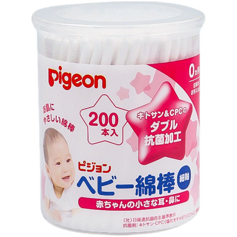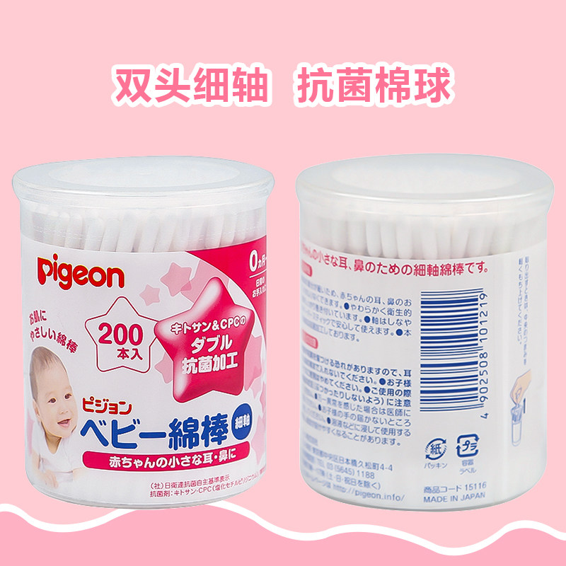 Japan imported shellfish thin shaft cotton swabs newborn baby baby ear cleaning olive oil adhesive type 200