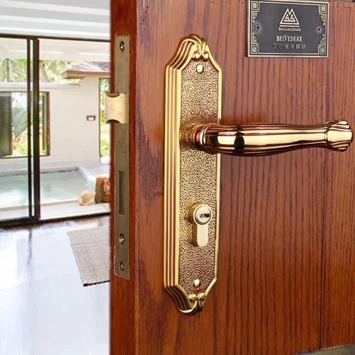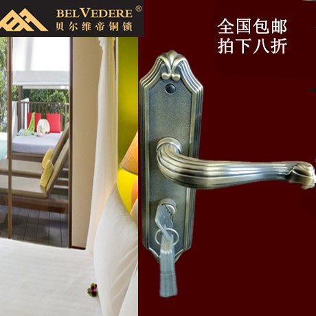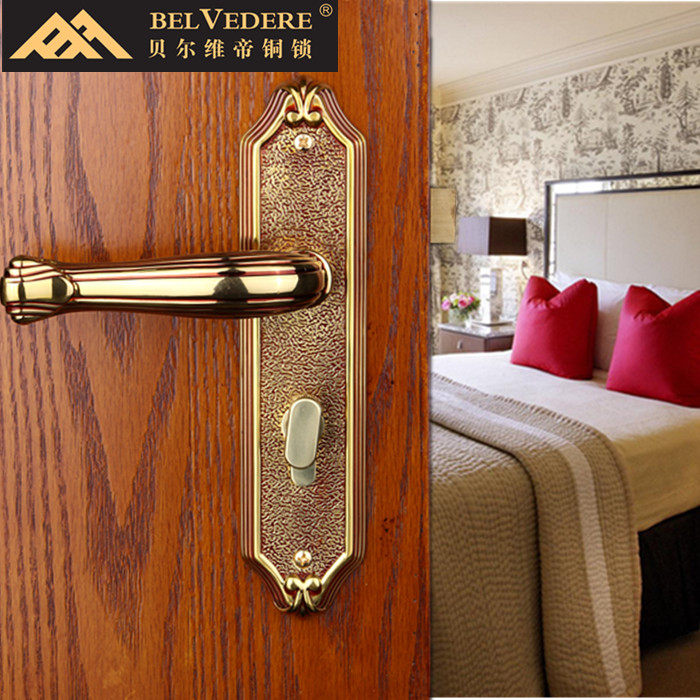 Belverdi BELVEDERE copper lock room door lock indoor make-up room Double tongue lock mute solid wood bedroom handle