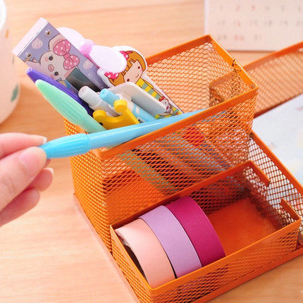 Cute creative color pen holder Metal grid multi-function combination pen holder Fashion desktop pen holder