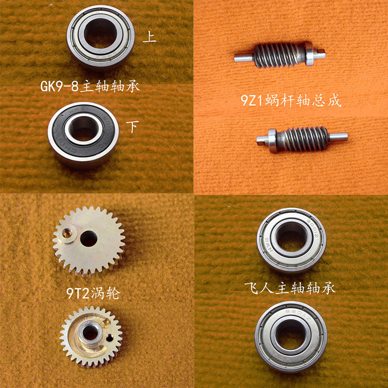 9R5 cover, one 9R6 thread holder, one (double thread) 9R7 thread protector, one 9R20 crochet holder, one 9R25 compression guide, one 9T2 turbine, one 9Z1 worm shaft