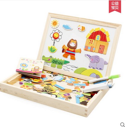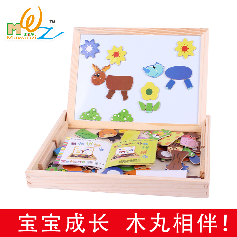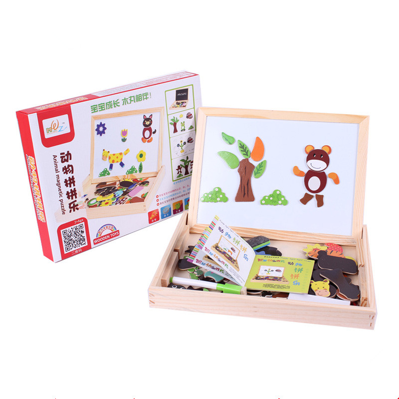 Animal scene magnetic scramble wooden double - sided panel puzzle children's puzzle toy 3 - 4 - 6 years old