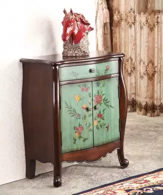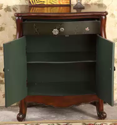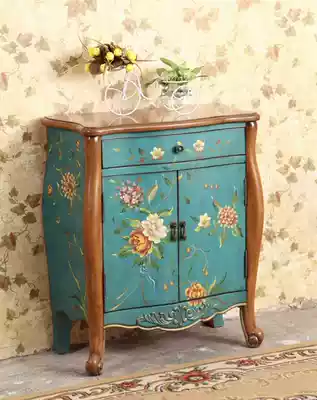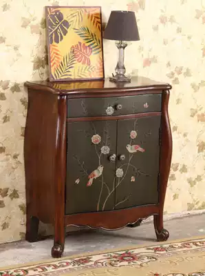 American country bedside cabinet pastoral Chinese porch cabinet painted hand-painted carved storage decoration cabinet furniture