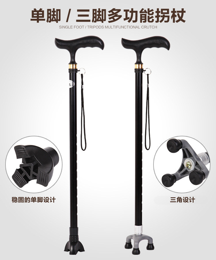 New aluminum alloy elderly crutch Three-point three-legged crutch Four-legged mountaineering walker telescopic cane