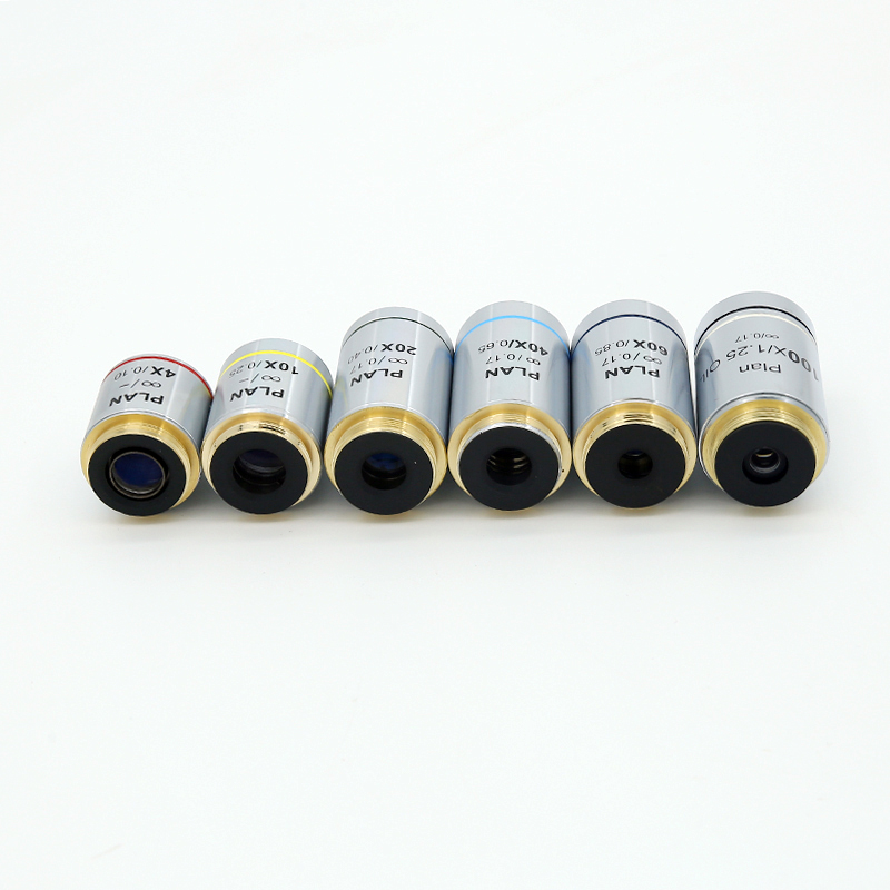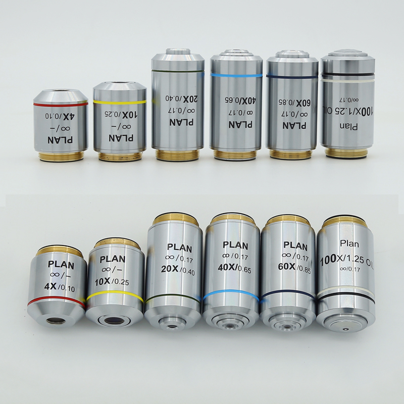 Type 195 microscope objective 4X10X20X40X 60X100X flat field infinite distant achromatic professional objective lens