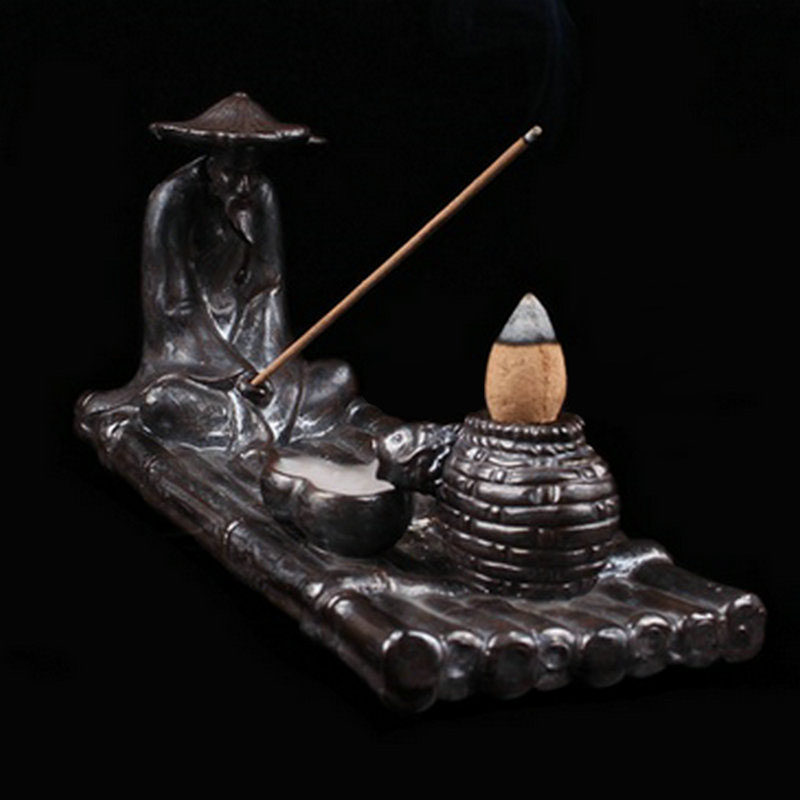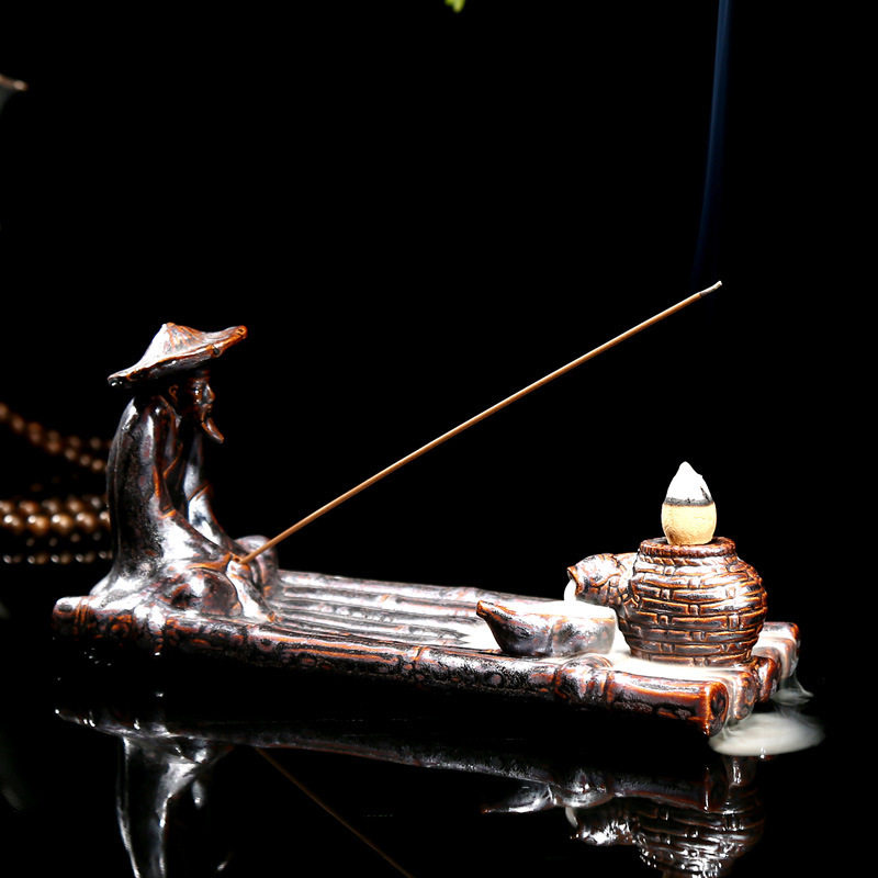 Taigong Fishing Backflow Incense Burner Creative Ceramic Tower Cone Seat Burning Sandalwood Buddha Incense Bracket Ornament