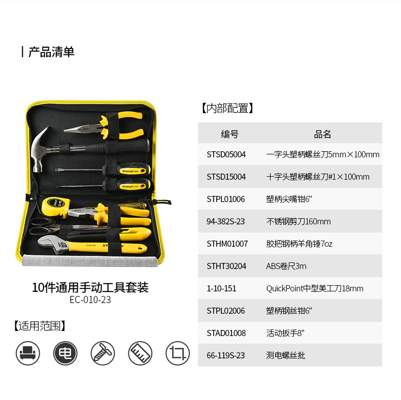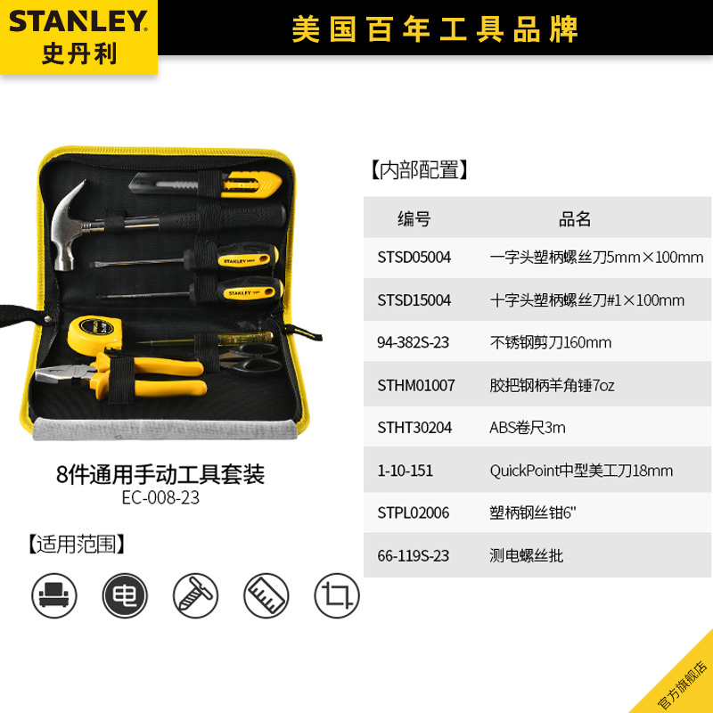 Stanley Toolbox Set Screwdriver Hand Tools Large Full Set Canvas Wrench Pliers Tape Measure Electrician Home