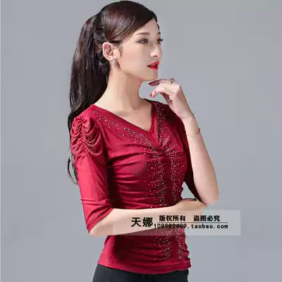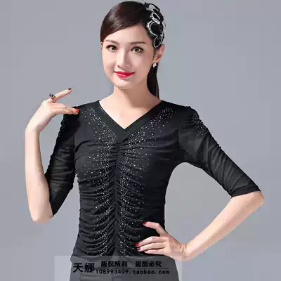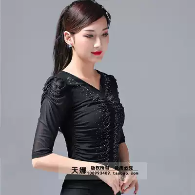 Korean yarn modern dance women's top mid-sleeve dance suit Adult new national standard dance practice suit Latin training suit