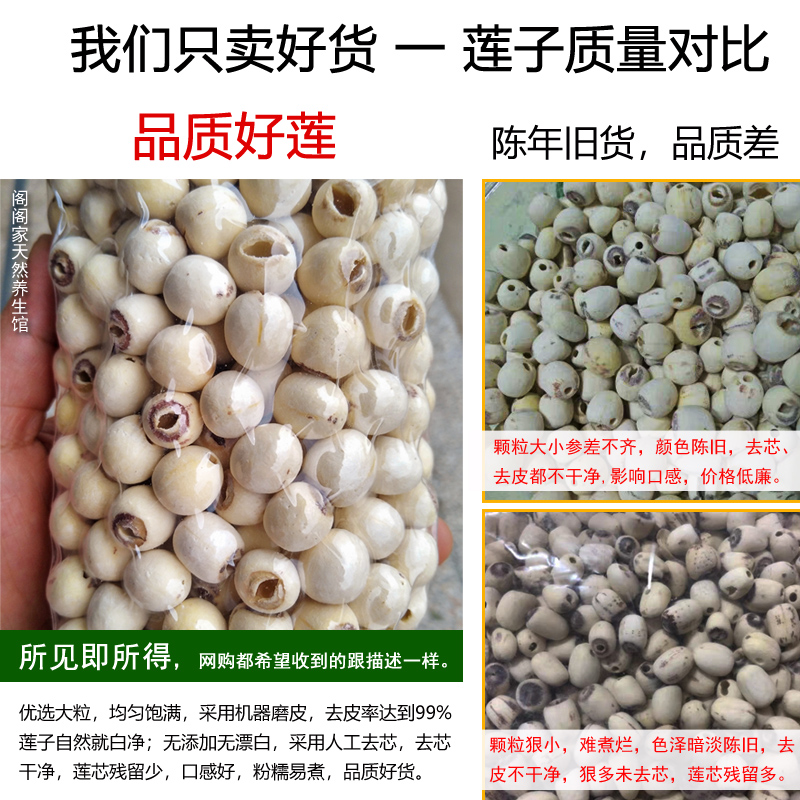 Xinlian large grain dermabrasion white lotus seed dry goods to core 500g specialty Xiang Lotus seed coreless white lotus seed to heart without sulfur