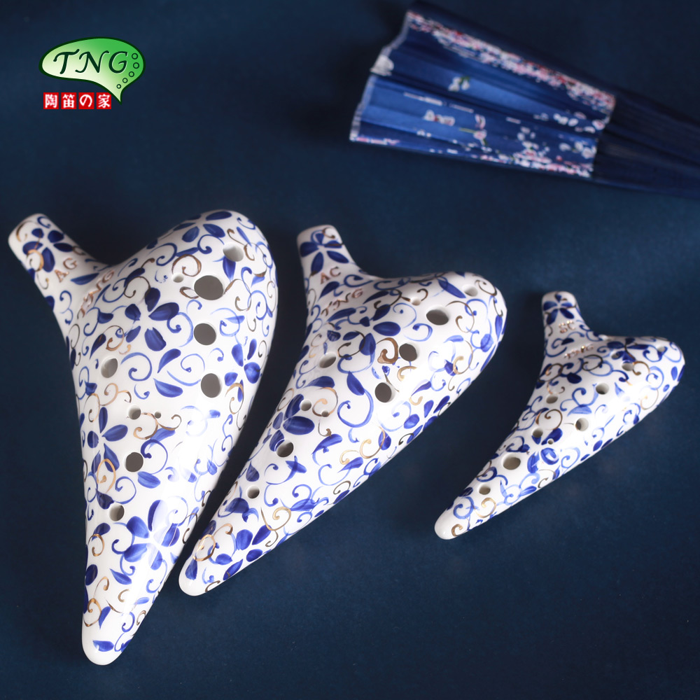 TNG Ocarina 12-hole AC-key Beginner's Introduction to Teaching Materials Blue and White Porcelain 12-hole Ocarina Alto C- key Professional Performance