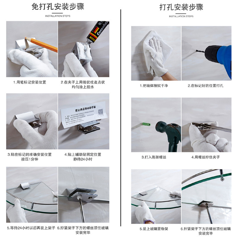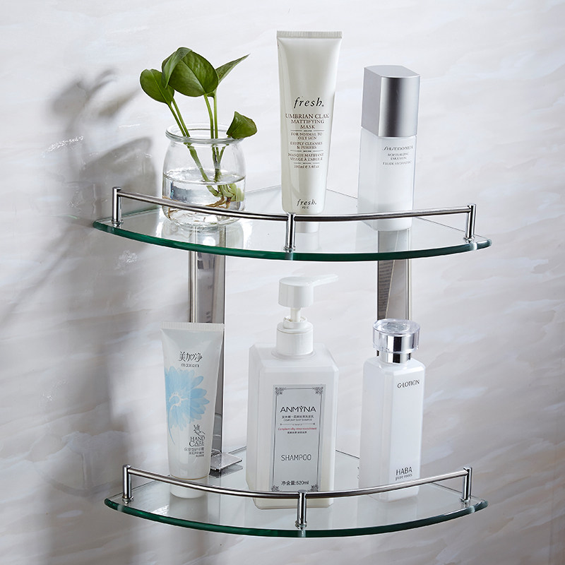 Single Layer Double Layer Stainless Steel Glass Corner Rack Toilet Bath supplies Dressing Room Tripod free of perforated shelves