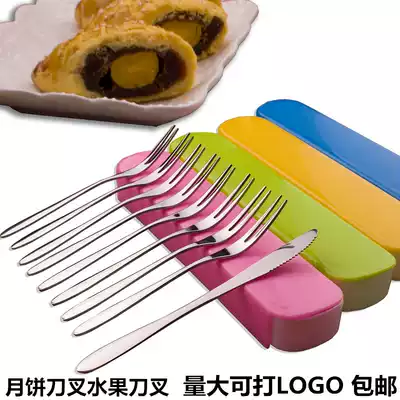 Fruit fork stainless steel moon cake knife fork cake fork 8 1 knife box set