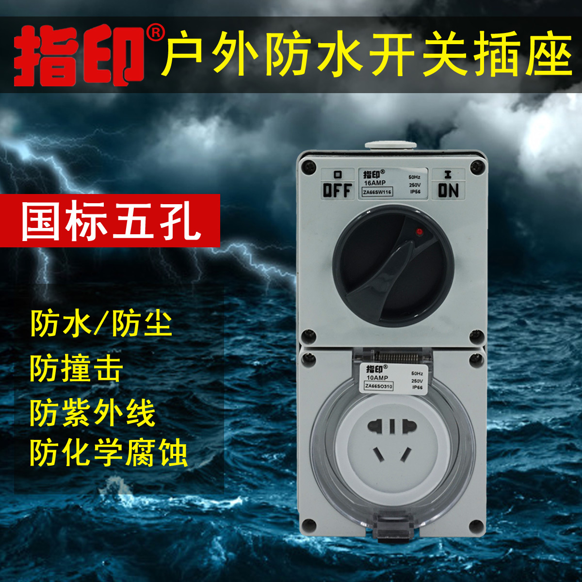 Fingerprint outdoor rainproof outdoor waterproof switch socket set 10A national standard five-hole socket 10A open set