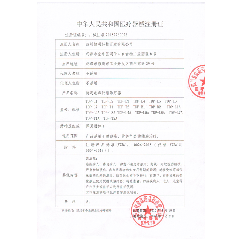 YZB Chuan 0004-2013 Specific electromagnetic spectrum therapy instrument