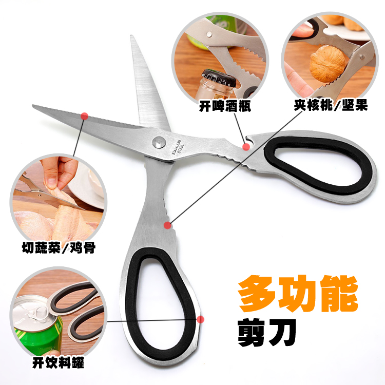 Promotion Preference All Stainless Steel Scissors Kitchen Scissors Home Clippers Multifunction Scissors with open bottle