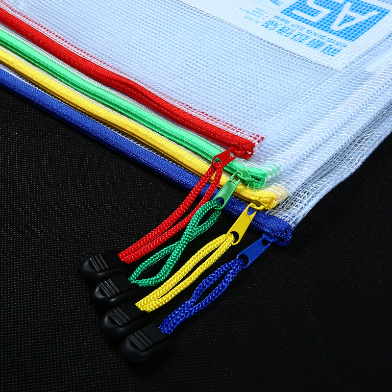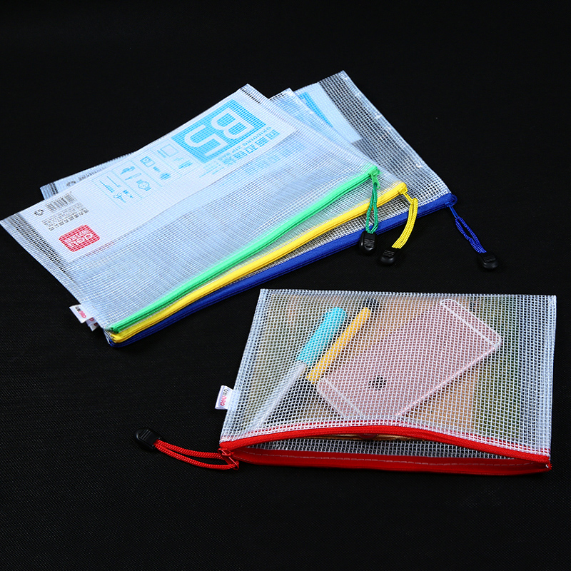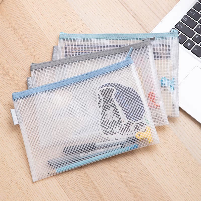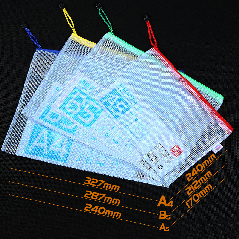 Deli zipper bag Transparent plastic grid document bag wholesale A4 pull edge bag data bag Transparent file bag Data storage document hexagonal grid bag thickened waterproof color student supplies