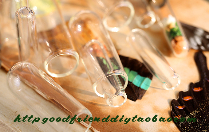 (special) test tube shaped long round glass cover DIY handmade ornament accessories for two pieces (0096G)