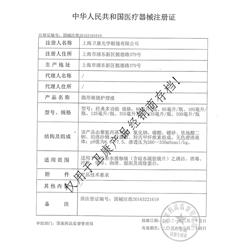 Weikang Xinshi care solution invisible myopia glasses beauty pupil box potion 500ml*2 125ml size bottle sk
