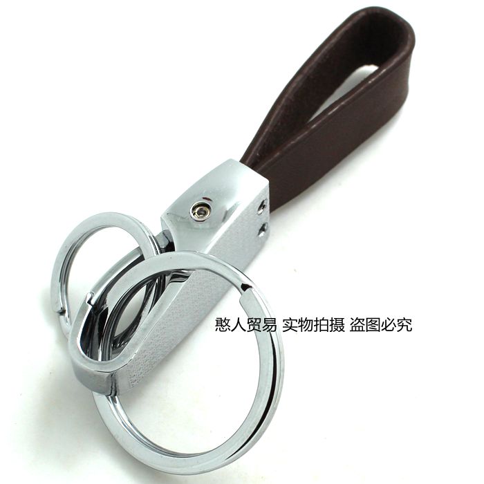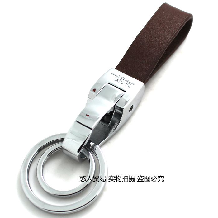 Boyou Bull Leather Key Clasp Double Ring Keychain Creative Key Ring Men's Waist Hanging Keyring