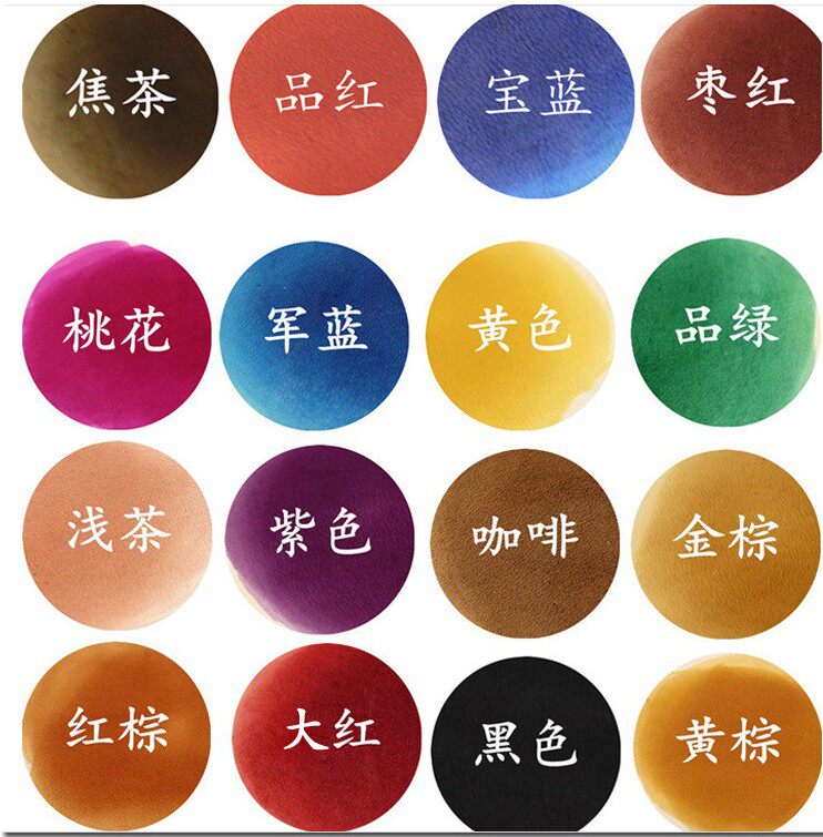 BLACK COFFEE COLOR CHARRED TEA COLOR 100ml PINT RED 100ml TREASURE BLUE 100ml DATE RED 100ml PEACH RED 100ml MILITARY BLUE 100ml YELLOW 100ml PINT GREEN