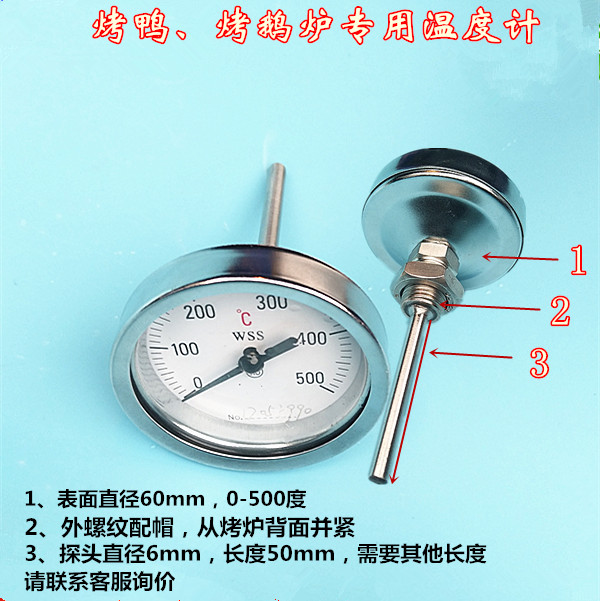 Bimetal thermometer WSS40115 radial axis universal pointer roast duck boiler pipe machinery stainless steel industrial watch