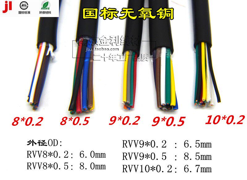 Pure copper power cord RVV8 * 0 2 8 core 0 2 squared connection line power cord 100 m One roll