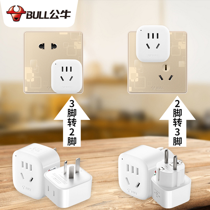 Bull Triangle Socket Head Converter Wireless Wireless Wireless Two-Turn Tripod Power Converter Plug Taurus Converter