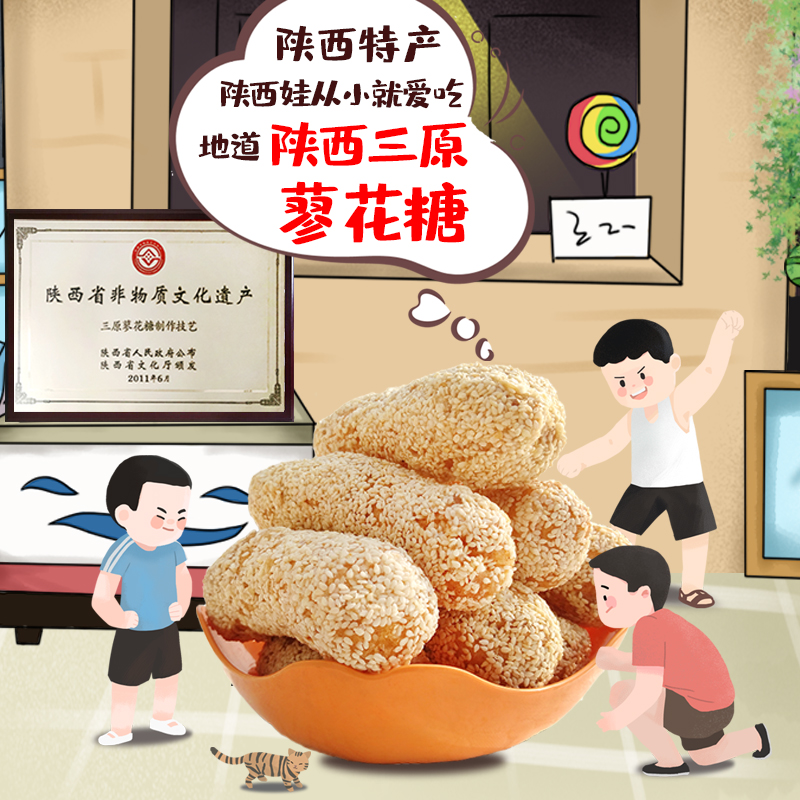 Glutinous rice, high-quality sesame seed, bean powder, honey, caramel, refined vegetable oil
