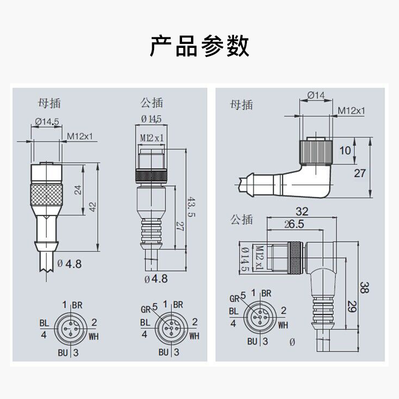 M12-4 core double mother-2m M12-5 core two-mother-2m M12-8 core two-mother-2m M12-12 core two-mother-2m