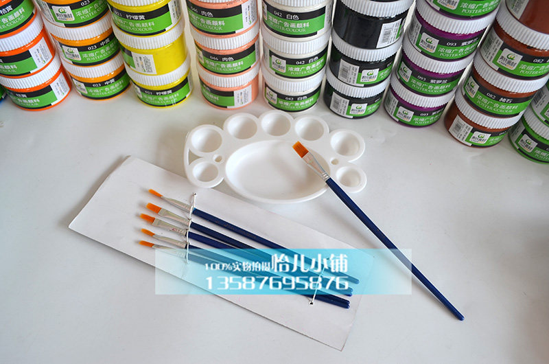 White gray black violet withered blue lake blue light green orange flesh color red grass green green green green lemon cooked brown peach yellow ocher 6 pointed brush 6 flat brush watercolor paper 8 open 10 sheets of white color