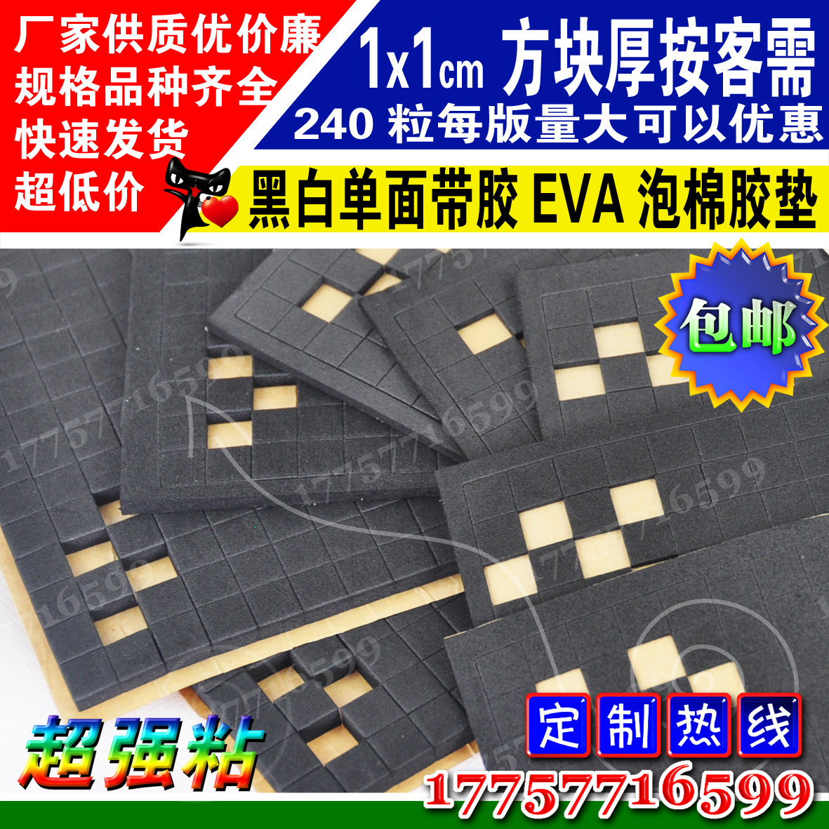 Black single-sided adhesive EVA foam sponge anti-shock seal anti-slip 2.5mm thick 1x1 cm square block rubber pad manufacturer pro